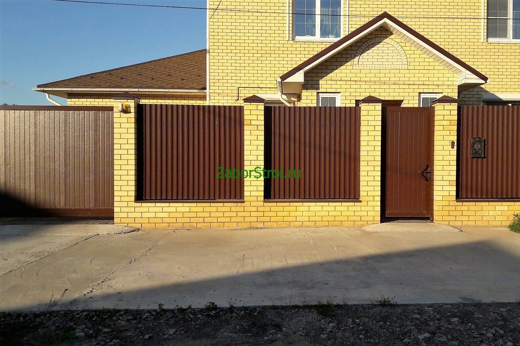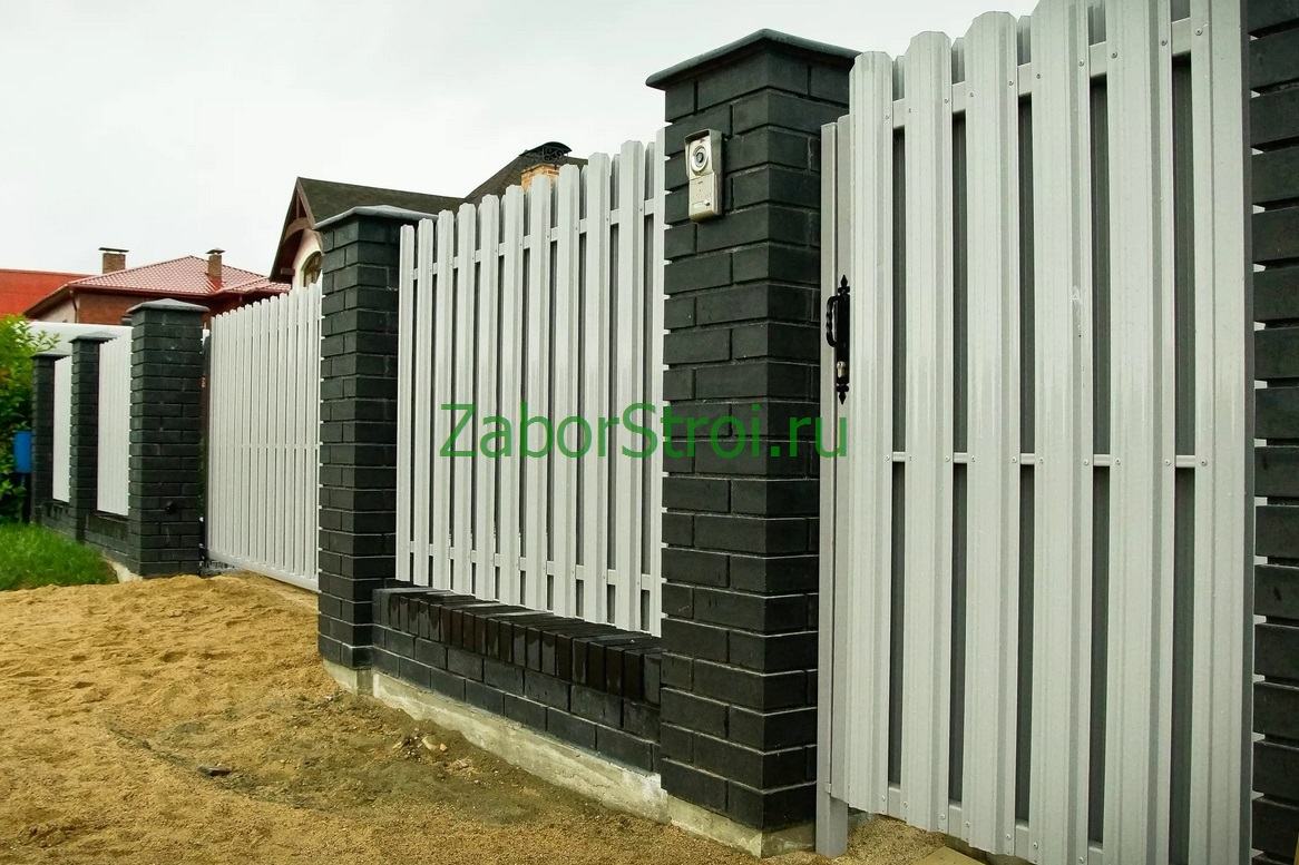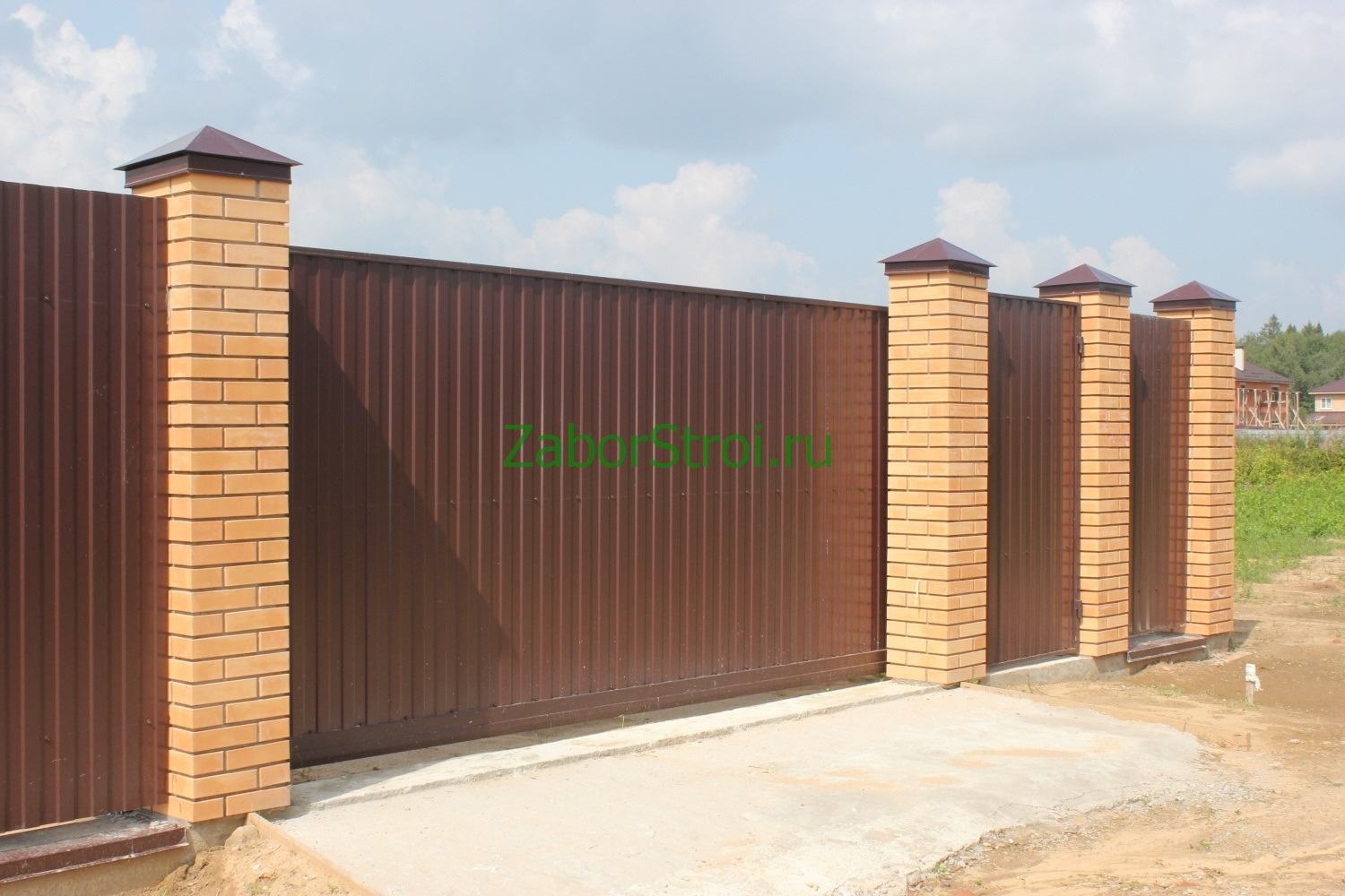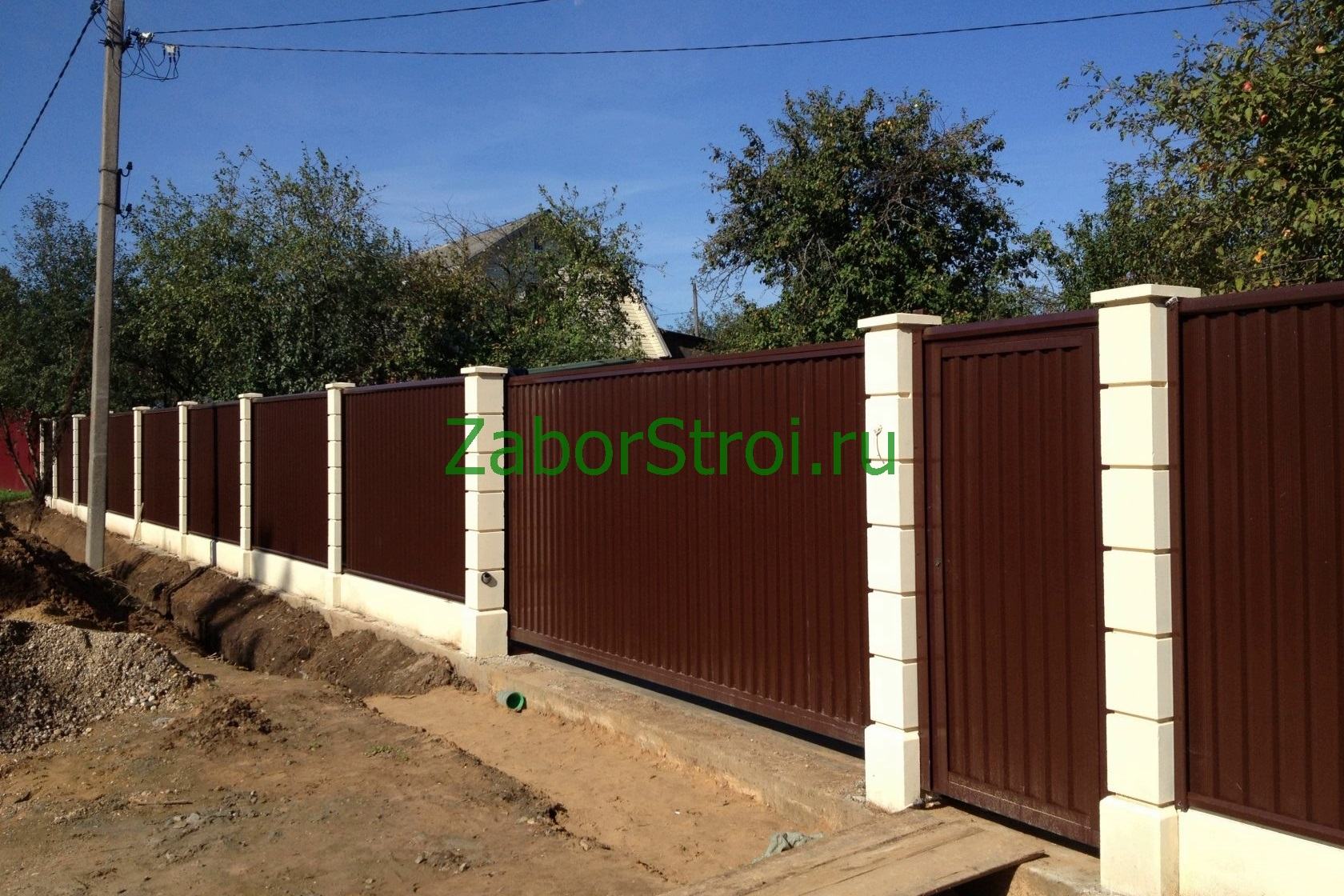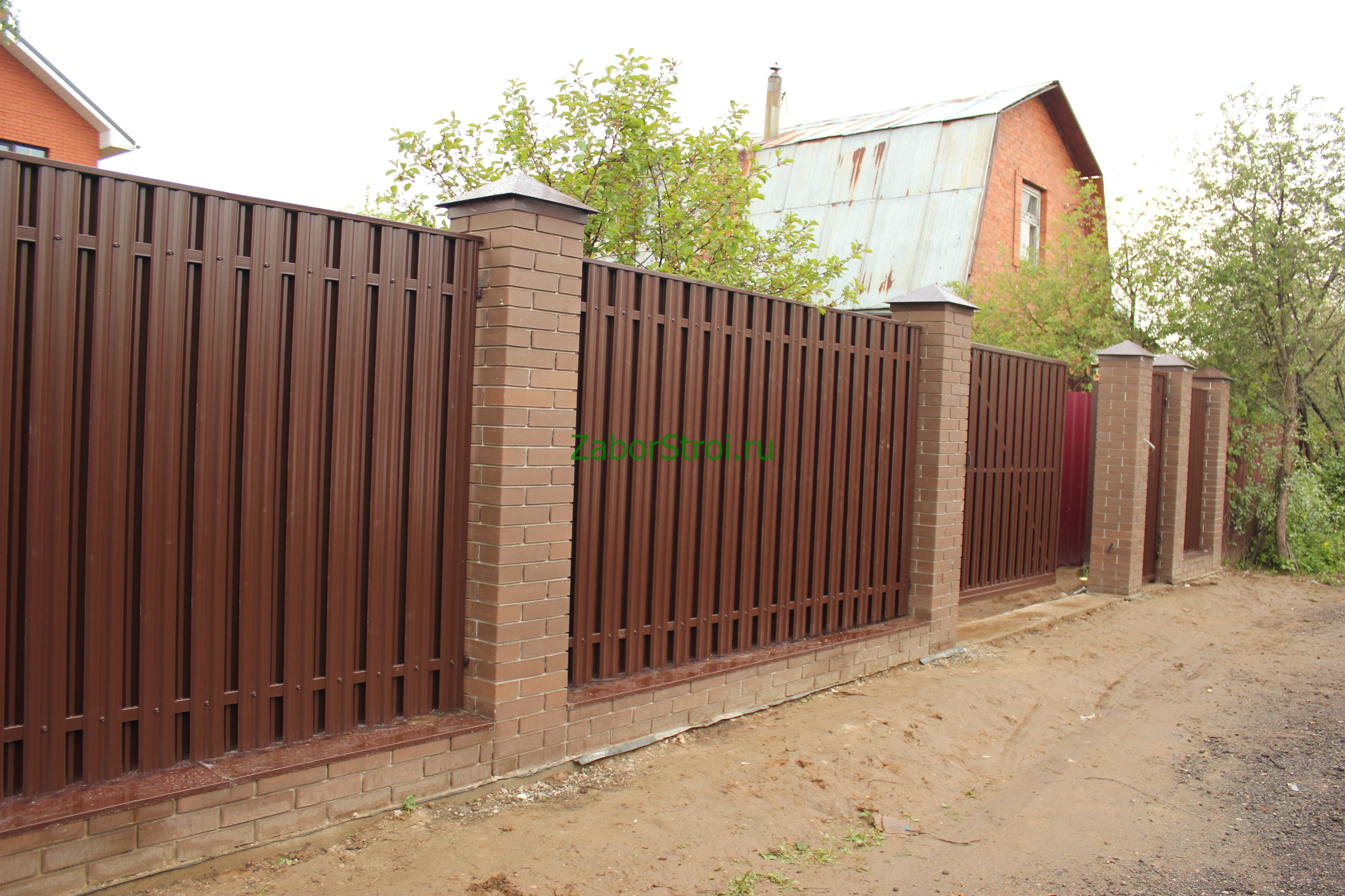 Ленточный с кирпичными столбами