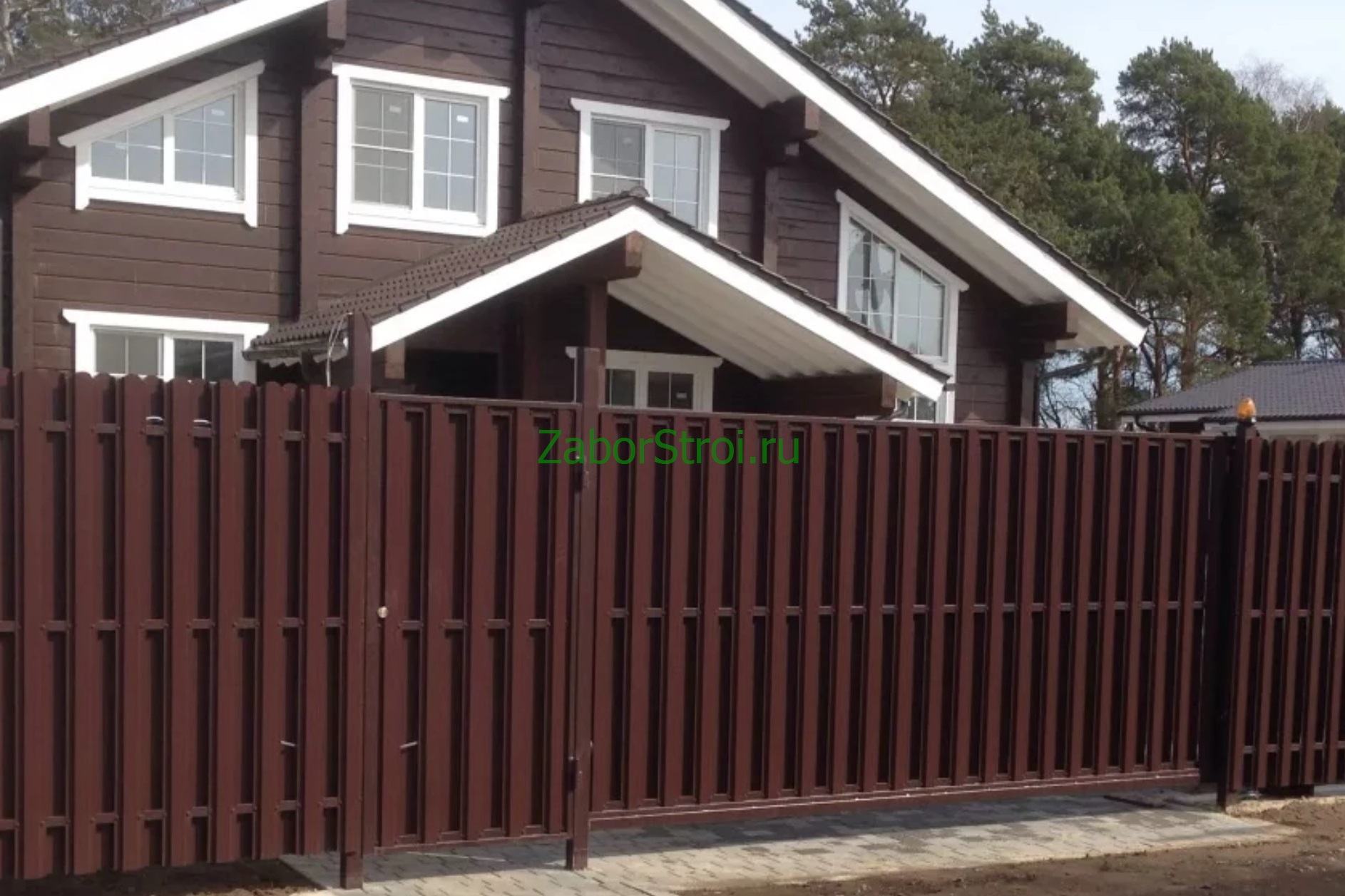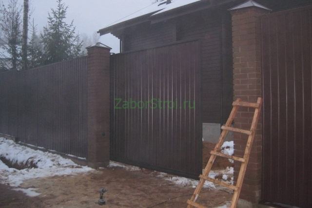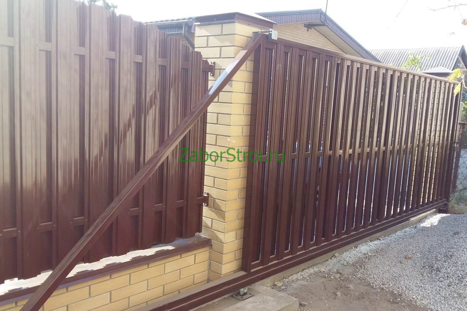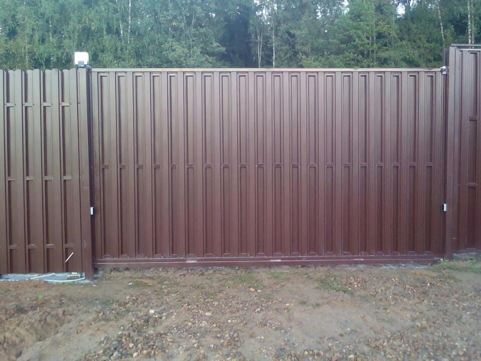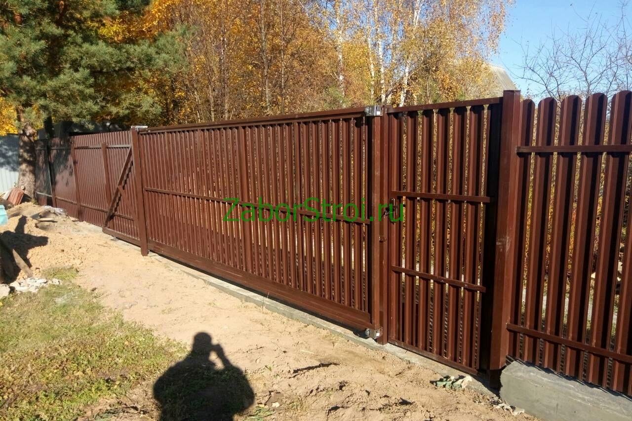Откатные ворота из профнастила на винтовых сваях (цена на бетонном основании +20000р)