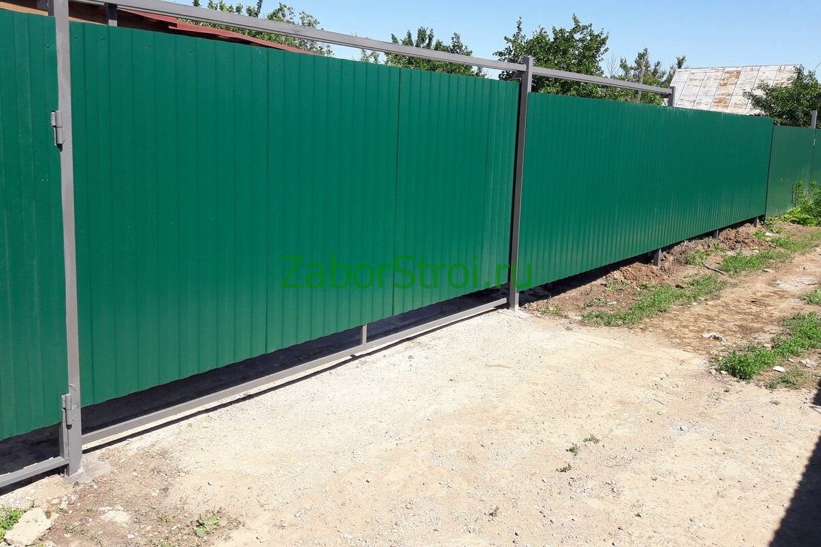 Откатные ворота из профнастила на винтовых сваях (цена на бетонном основании +20000р)
